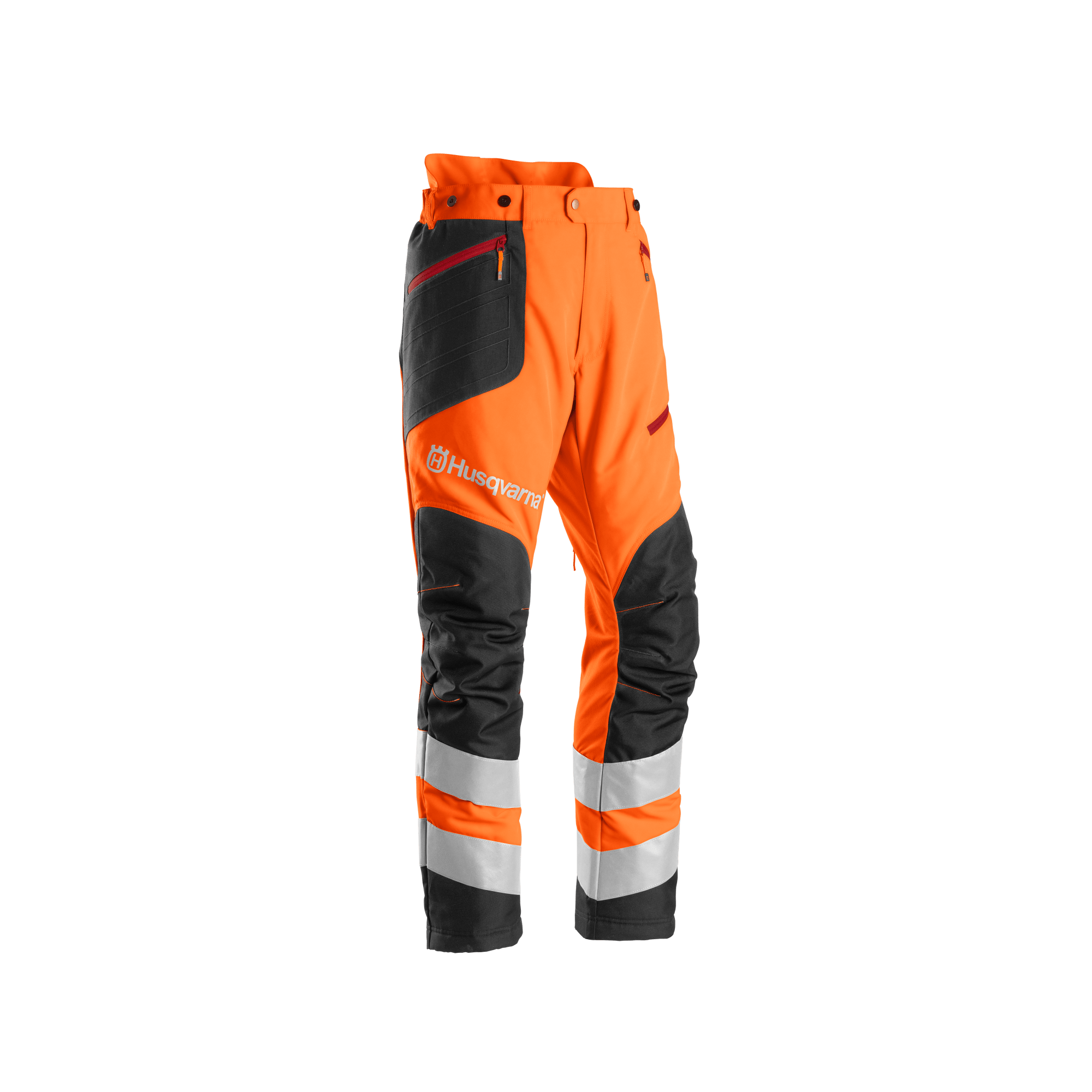 Byxor speciellt utformade för att arbeta långa timmar med buskröjare eller trimmer. Godkända enligt EN ISO 20471 klass 2. Plats för extra vaddering för att avlasta höften. Vattenavvisande material på benen med extra stoppning mot grus. Ytbehandlat tyg för att förenkla trimning av vått gräs. Förstärkningar på utsatta områden ökar hållbarheten och livslängden. Ventilations-blixtlås på baksidan av benen håller temperaturen på en behaglig nivå. Ergonomiskt förböjda knän. Storlek 46 – 60.